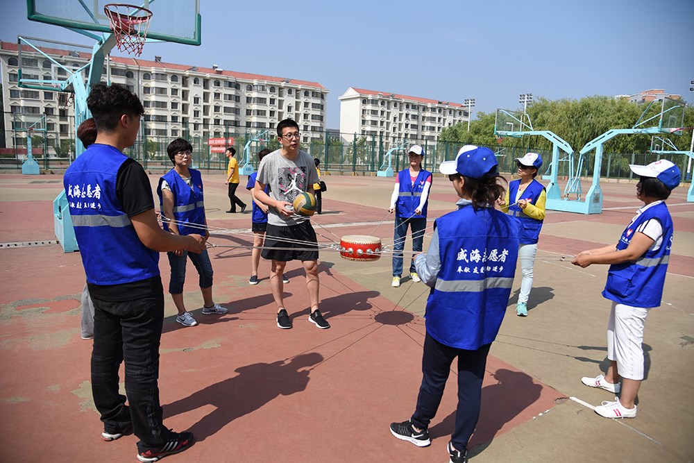 本次拓展训练团队建设活动,将鲸园街道社会组织党支部参与成员分为6队,春华残障康复服务中心教师除裁判外,全部作为指导教师分在各组,并和队员们一起为本队起队名、选队长、进行短暂的赛前训练。这次拓展训练团队建设活动进行了“同心鼓”“巨人脚步”“摸石头过河”“能量传输”“月球行走”5个项目的比赛,教练和队员团结一致,每个队员之间相互鼓励、齐心协力,形成了热烈的团队协作气氛。队员们虽刚刚接触拓展训练项目,但经过短暂的训练后,在比赛中都能超常发挥,创造佳绩,充分展现了团队意识和永不言败的拼搏精神。活动结束时,队员们争着和教练合影留念,两个党支部就像两个大家庭一样通过这次活动紧紧的凝聚在一起。真正达到了拓展训练锻炼身体、鼓舞斗志,增强团队凝聚力的功能。